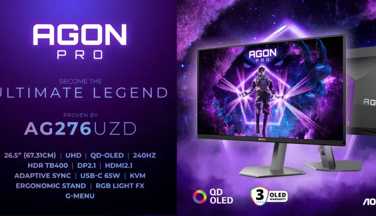 „AGON by AOC“, pasaulyje pirmaujantis žaidimų monitorių prekės ženklas, pristato AGON PRO AG276UZD – naują 26,5 colių (67,31 cm) QD-OLED žaidimų monitorių, suderinantį UHD (3840×2160) raišką ir 240 Hz atnaujinimo dažnį. Šis naujas AGON PRO modelis, sukurtas remiantis didelio populiarumo sulaukusio AG276QZD2 sėkme, sujungia puikią vaizdo kokybę su itin aukštu 240 Hz atnaujinimo dažniu ir žaibišku 0,03 ms atsako laiku („GtG“), kad tiek esporto varžybose, tiek kuriant turinį pavyktų pasiekti įspūdingų rezultatų.