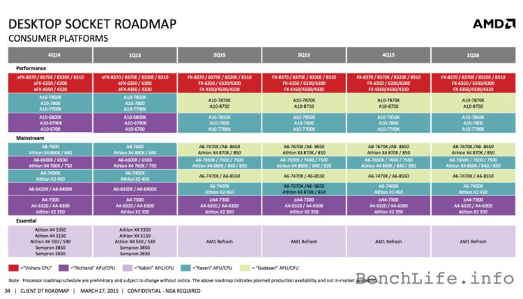 Daugiausia naujienų bus skirta FM2+ platformai. Šiuo metu pagrindiniai AM1 platformos produktai yra „Athlon X4 5350“, 5150, 550 ir 530 procesoriai (du paskutiniai neturi GPU), taip pat „Sempron 3850“ ir 2650. „Advanced Micro Devices“ daugiausia procesorių gamybai numatytų resursų skirs „Zen“ mikroarchitektūros vystymui.