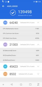 Todėl „ZenFone 5“ veikia pastebimai greičiau nei dauguma vidutinio kainų segmento išmaniųjų su silpnesniais SoC – tai ne flagmanų lygis, tačiau nemažas žingsnis šia kryptimi. Didesnis procesoriaus našumas yra aiškiai matomas sintetinių testų rezultatuose.