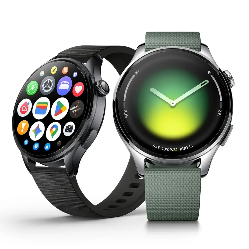 • Xiaomi Watch 5 (Wear OS, 1,54″) — juodos ir žalios spalvų, 300 €