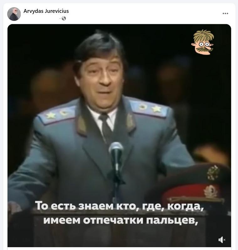 Perėjome prie klausimo, ar jis dalijasi savo tėvo prorusiškomis pažiūromis, nurodytomis straipsnyje (britų žurnalistai paskelbė kelias „Facebook“ ekrano kopijas). Reakcija buvo nenuspėjama. Iš pradžių Ovidijus Jurevičius agresyviai pareiškė, kad jo tėvas „neturi socialinių tinklų“. Vėliau tvirtino, kad įrašai, paskelbti britų leidinio ir priskirti jo tėvui Arvydui Jurevičiui, buvo suklastoti.