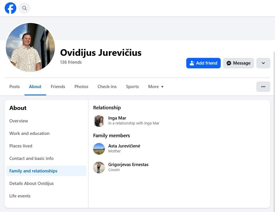 Tačiau net paviršutiniškai peržvelgus socialinius tinklus matyti, kad tai, švelniai tariant, nėra tiesa. Jo tėvo paskyra — Arvydas Jurevičius — buvo rasta beveik akimirksniu. Paties Ovidijaus Jurevičiaus „Facebook“ paskyroje kaip jo motina nurodyta Asta Jurevičienė.