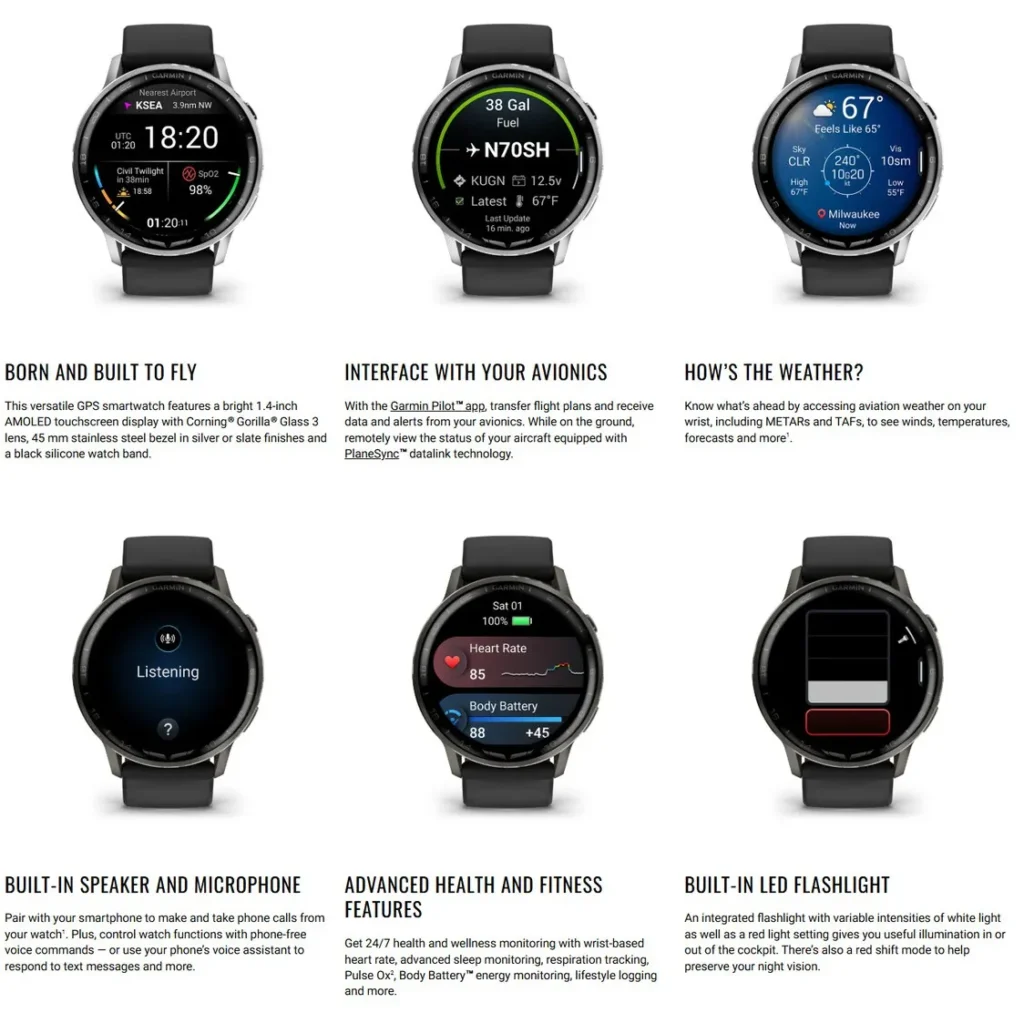 Naujovė taip pat siūlo integruotą LED žibintuvėlį. Programinėje įrangoje yra „Garmin Pilot“ programa, teikianti skrydžių duomenis, navigacijos informaciją, rytinį skrydžių situacijos ataskaitą ir kitą naudingą informaciją pilotams.
