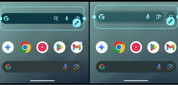 „Google“ pertvarkė paieškos juostos valdiklį, kuris rodomas „Android“ įrenginių pagrindiniame ekrane. Anksčiau apvalioje paieškos valdiklio juostoje kairėje buvo „G“ logotipas, o dešinėje – mikrofono ir „Google Lens“ aktyvavimo nuorodos. Naujasis dizainas prideda nuorodą į dirbtinio intelekto funkciją „Circle to Search“, kuriai skiriamas ypatingas dėmesys.