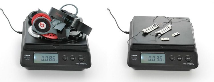 Įmonės „Bolt“ specialistas Avery Louie išardė populiarias ausines „Beats by Dre Solo“ ir nustatė, kad jų svorio padidinimui gamintojas konstrukcijoje naudoja metalines detales. Šio balasto svoris yra 36 gramai, tai yra, jie sudaro 30% visos produkto masės.