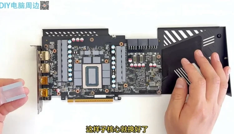 „Bilibili“ platformoje paskelbtame vaizdo įraše demonstruojamas vaizdo plokštės išardymo, gamyklinio terminio interfeiso valymo ir naujojo užtepimo procesas. Pakeitimui buvo naudojamos „Gilson HD800“ ir „HD1200“ termo tarpinės. „HD800“ versija turi deklaruojamą 8 W/m·K šilumos laidumą, kuris yra neblogas, nors ir ne aukščiausias rinkoje. Vienos „Gilson HD800“ lapo kaina siekia apie 1,53 USD.