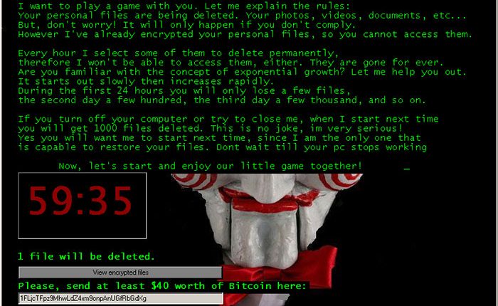 Saugumo ekspertų dėmesį patraukė kita išpirkos reikalaujančių kenkėjų grupė, bandanti žaisti su vartotojais – „Jigsaw“. Kaip ir populiariame siaubo filme „Pjūklas“, kenkėjas nustato savo taisykles: nesumokėjus išpirkos per valandą, ištrina vieną failą, po dviejų valandų – antrą ir t.t. „Jigsaw“ taip pat įspėja ištrinsianti 1000 failų, jei kompiuterio naudotojas paleis įrenginį iš naujo. Tačiau ESET tyrėjams išanalizavus kenkėjo kodą paaiškėjo, kad „Jigsaw“ naudoja vis tą patį šifravimo raktą, tad netruko pasirodyti ir kenkėjo veiklą ištaisantis įrankis.