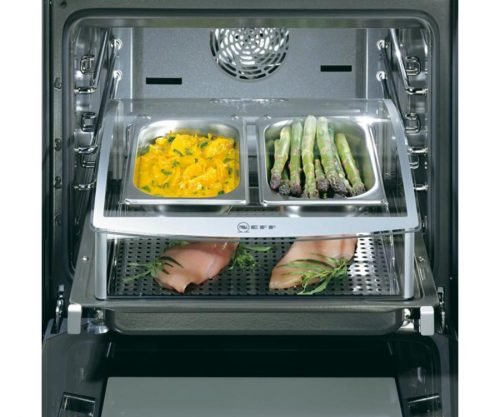 Įdomus režimas, kuris tinka sveiko maisto mėgėjams. Gaminimo garuose funkcija gali būti įdiegta tik elektrinėse krosnelėse. Ji yra įgyvendinama dviem būdais. Pirmuoju atveju naudojamas indas su vandeniu (paprastai išimamas). Kai aktyvuojamas režimas, skystis patenka į specialų generatorių, kuris transformuoja vandenį į garus, o jie, savo ruožtu, patenka į darbo zoną. Antras metodas: orkaitės komplekte būna talpa, kuris yra nejautri aukštai temperatūrai. Ji pripildoma vandens ir įstatoma į kamerą. Dėl šilumos poveikio vanduo pradeda šilti ir pereina į garų būseną.