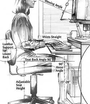 Kompiuterių vartotojai žiūredami į ekraną mėgsta palinkti į priekį. Tačiau jei norime dirbti efektyviai, turime išlaikyti tokią pečių padėtį, kad raumenis apkrautume minimaliai ir galėtume dirbti sėdėdami tiesiai.