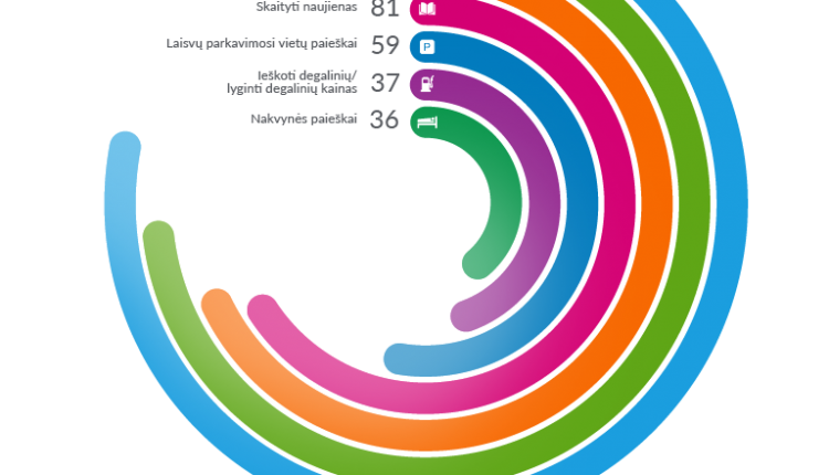 Savo “geležini žirgą” tenka maitinti, kartais jis išalksta visai netikėtai, todėl ieškoti artimiausios degalinės pasitaiko kas penktam vairuotojui. Programėles nakvynės paieškai naudoja 26 proc. aplikacijų naudotojų, maitinimosi įstaigų – 20 proc.