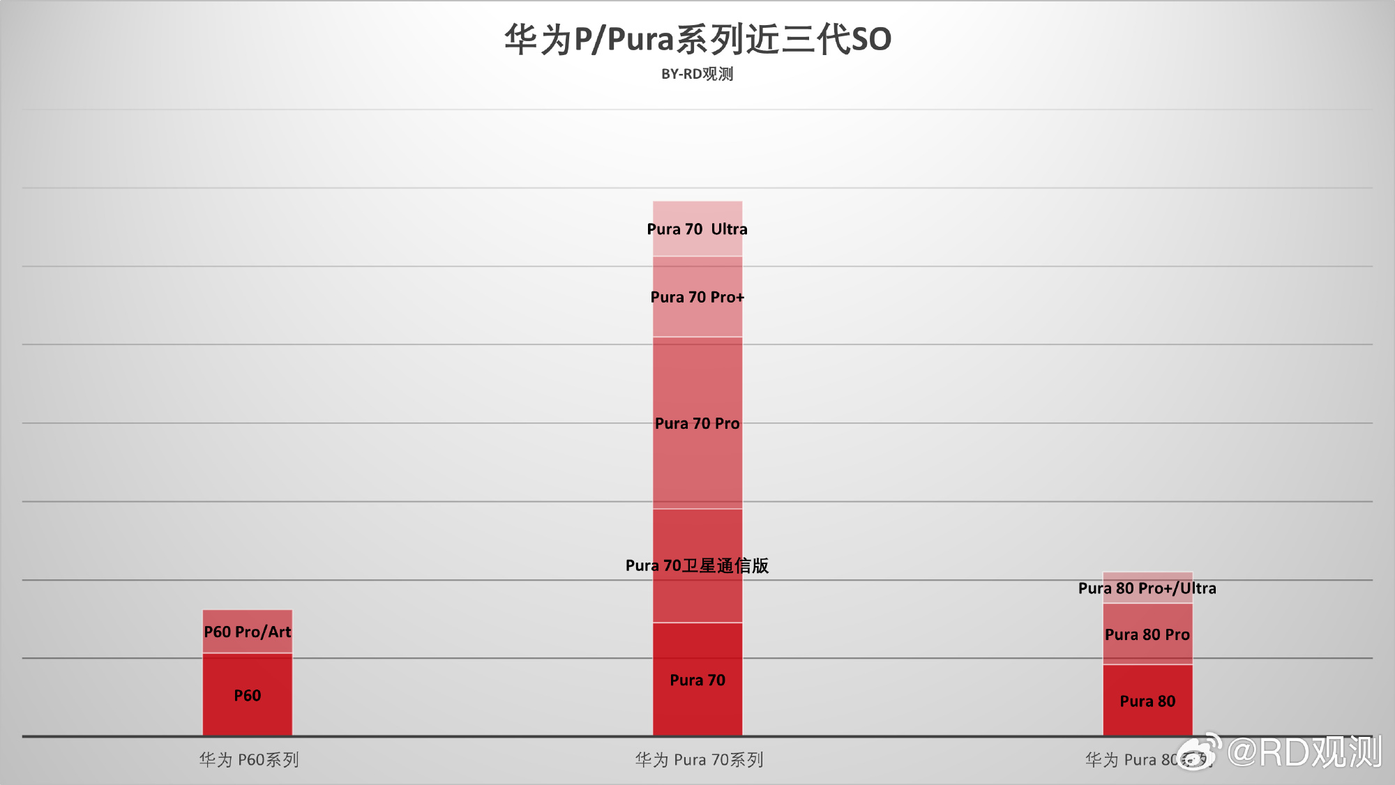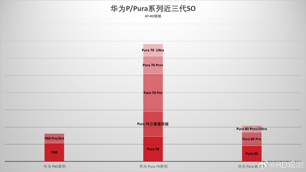 Vaizdas kalba pats už save: „Pura 70“ tapo serijos viršūne — su penkiais modeliais ir gerais pardavimais, o „Pura 80“ smarkiai smuko pagal abu rodiklius.