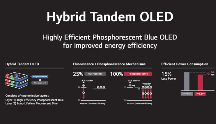 Šiandien paaiškėjo, kad LG Display nepavyko sukurti masinės visiškai fosforescencinių ekranų gamybos proceso. Todėl bendrovė komercializavo hibridinę technologiją. Jos esmė – ekranų pikseliai bus dvisluoksniai, sudaryti iš OLED ir PHOLED. Tokių ekranų energijos sąnaudos bus 15 % mažesnės nei įprastų OLED, o ryškumas ir spalvų perteikimas, kaip žadama, išliks aukšto lygio.