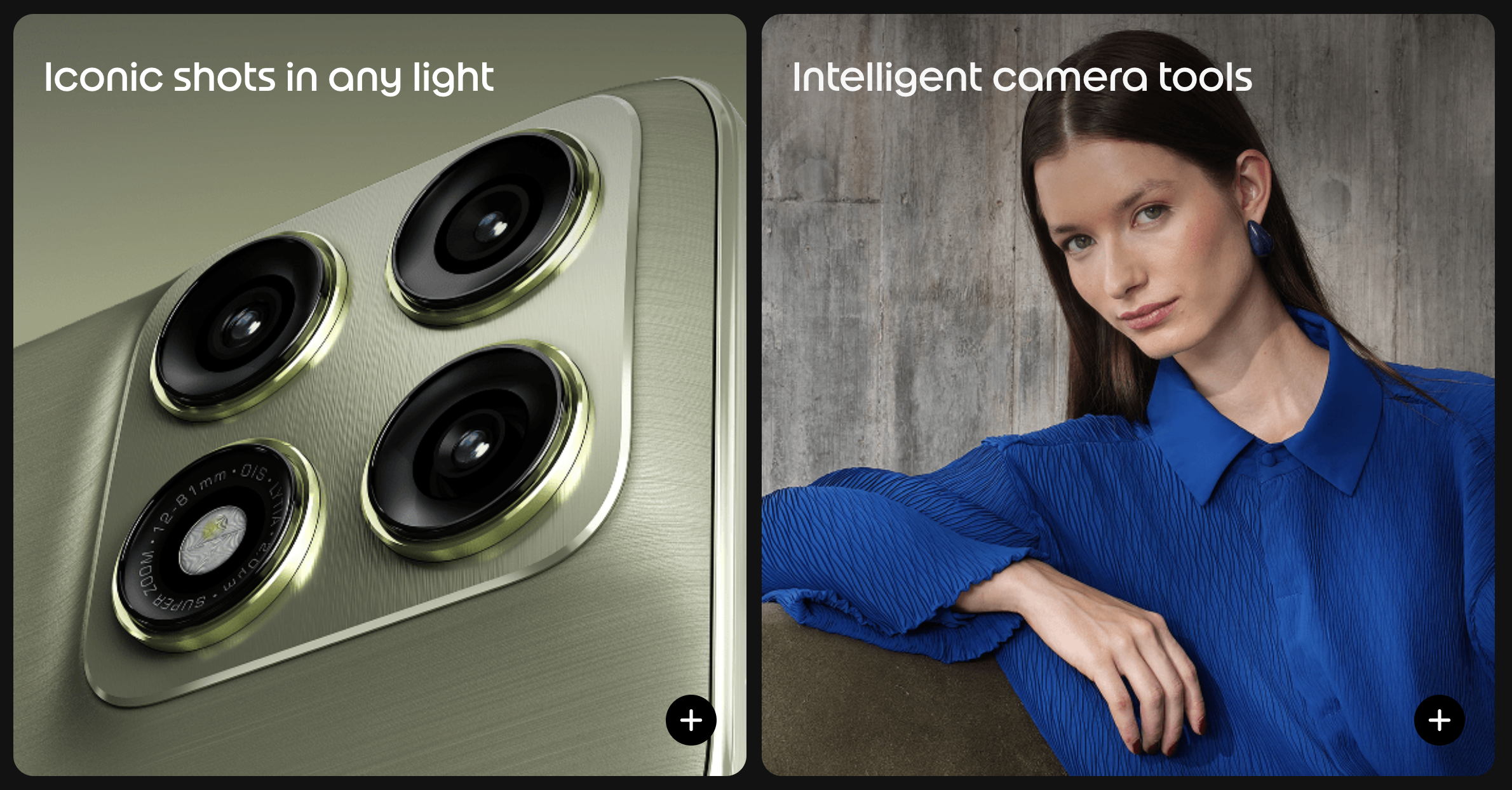 Triguba kamera apima 50 megapikselių pagrindinį jutiklį Sony Lytia 710 su faziniu automatinio fokusavimo veikimu per visą kadrą ir optine stabilizacija, 50 MP itin plataus kampo kamerą su 122 laipsnių matymo kampu ir makro režimu, taip pat 50 MP priekinę kamerą su automatiniu fokusavimu. Išmanusis telefonas filmuoja 4K HDR10+ formatu 60 kadrų per sekundę greičiu ir palaiko sulėtintą filmavimą 4K 120 kadrų per sekundę režimu.