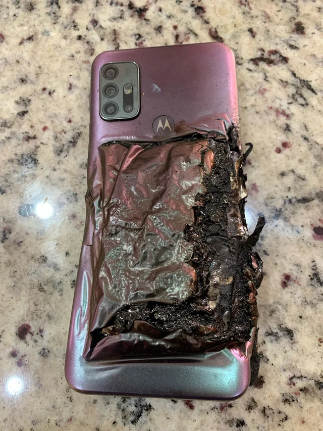 Komentaruose jis taip pat paskelbė dokumento ištrauką, kurioje minimas „Reels“ vaizdo įrašas apie „sprogusį Motorola telefoną“. Vaizdo įraše matyti žmogus su pradegusia kelnių kišene, rodantis apdegusį įrenginį.