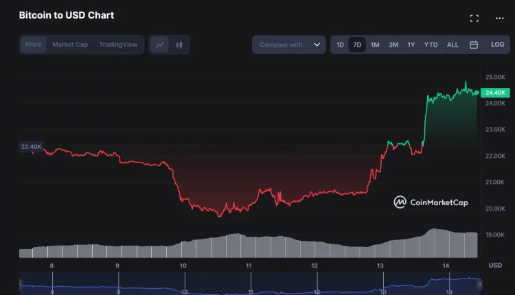 Po bankų žlugimo bangos JAV bitkoino kaina pakilo virš 24 000 USD