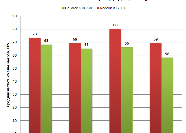 Prieš pradedant išsamiai skirtingais dažniais testuoti CPU norėtųsi įsitikinti, kad AMD vaizdo plokštės paklūsta tiems patiems dėsniams kaip konkurentės iš „NVIDIA“. Čia mes palyginsime „Radeon R9 290X“ su panašaus našumo „GeForce GTX 780“.