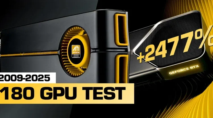„RTX 5090“ yra 26 kartus greitesnė nei „Radeon HD 5870“: išsamus 180 vaizdo plokščių, išleistų nuo 2009 iki 2025 m., testas
