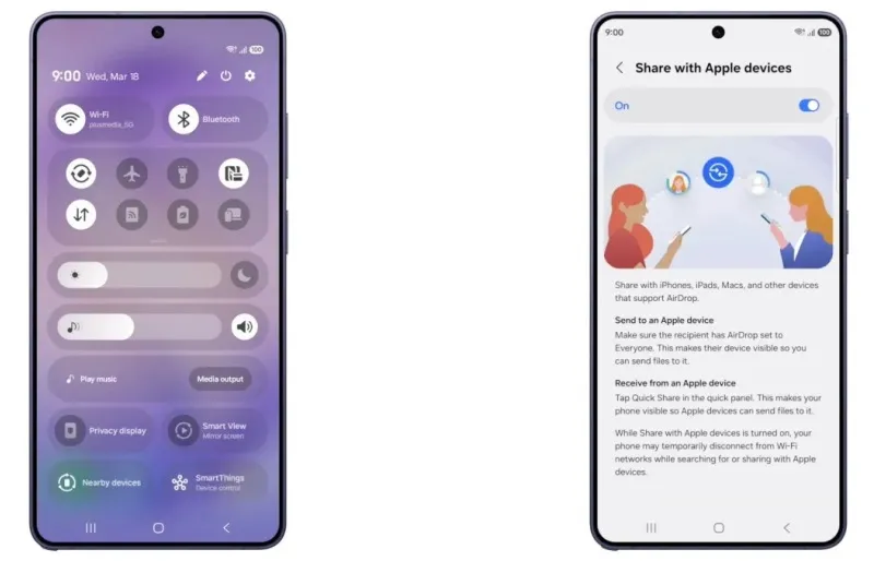 Bendrovė „Samsung“ paskelbė apie „AirDrop“ technologijos palaikymo diegimą per „Quick Share“ funkciją „Galaxy S26“ serijos išmaniuosiuose telefonuose. Jau šią savaitę „Galaxy S26“, „S26+“ ir „S26 Ultra“ savininkai pradės gauti prieigą prie naujienos, leidžiančios keistis failais su „Apple iPhone“, „iPad“ ir „Mac“ įrenginiais. Pirmą kartą ši funkcija pasirodė „Google Pixel 10“ išmaniuosiuose telefonuose, o vėliau tapo prieinama ir „Pixel 9“.