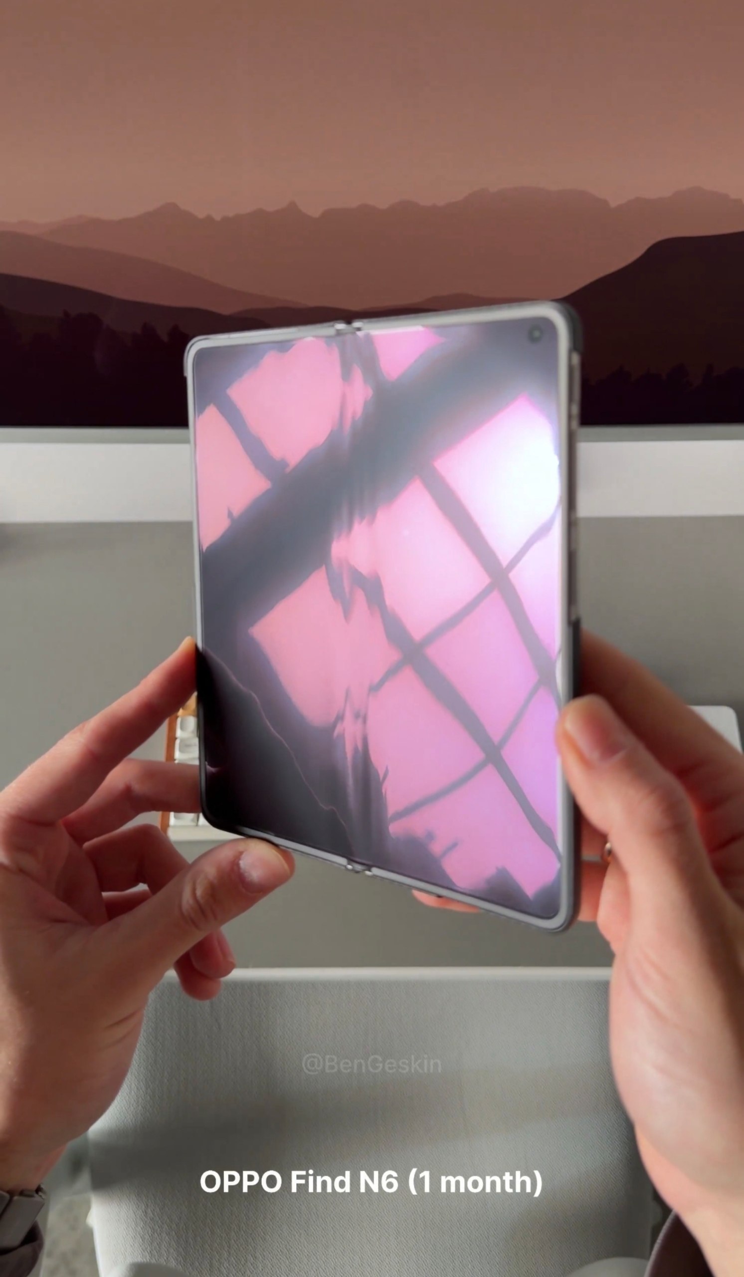 Tinklaraštininkas Ben Geskin (@BenGeskin) paskelbė nuotraukas, kaip atrodo „Find N6“ po mėnesio naudojimo. Deja, stebuklo neįvyko – ekrane atsirado aiškiai matoma raukšlė, nors anksčiau buvo garsiai skelbiama apie jos „įveikimą“. Palyginimui autorius pateikė to paties įrenginio nuotraukas pirmąją naudojimo dieną, taip pat palygino raukšlės gylį su metų senumo OPPO Find N5: